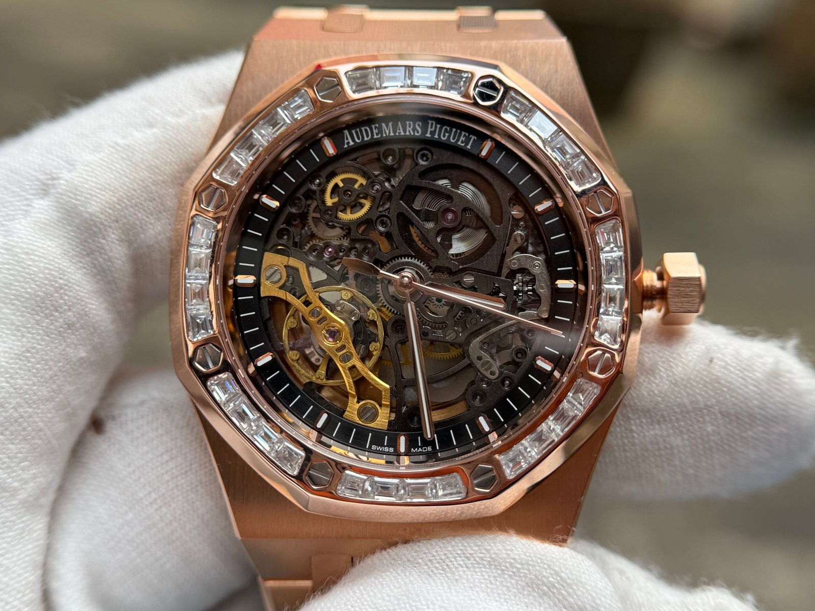 Movement:Custom Asian 3120 Automatic Movement Decorated to AP Calibre 3132 Skeleton Movement like the genuine